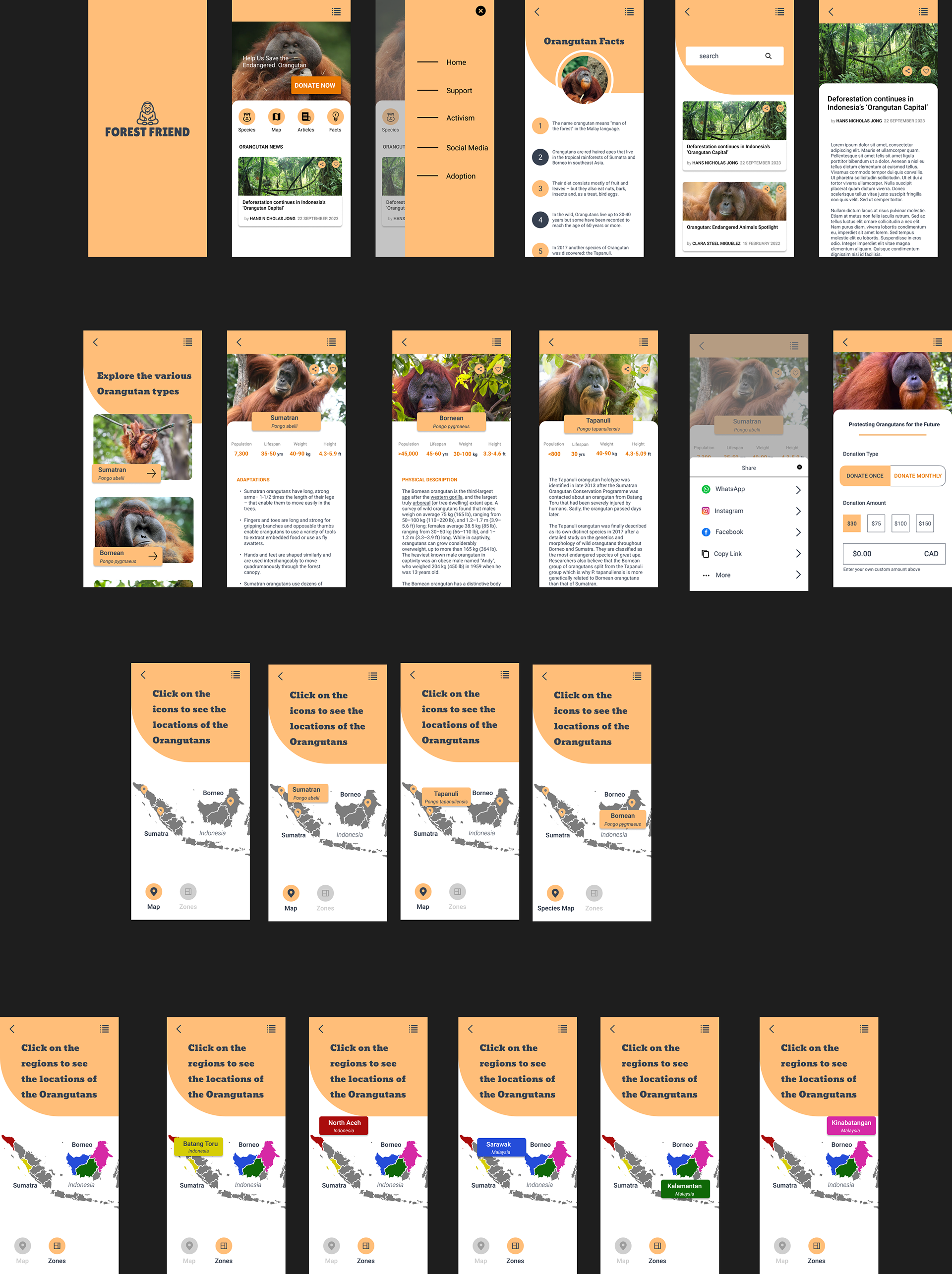 The user research conducted for the Forest Friend app encompassed interviews, surveys, and feedback collection from a diverse set of participants. This research aimed to understand user motivations, needs, preferences, and pain points related to orangutan conservation and the app's features.